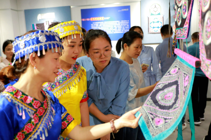 在市群眾藝術(shù)館,員工們參觀了“巧手織就彩衣裳”少數(shù)民族服飾展,講解員詳細介紹了柳州苗、瑤、侗等少數(shù)民族服飾的制作技藝、每一道工序的由來和寓意,以及他們的生活習(xí)俗,透過一件件絢麗的少數(shù)民族服飾,深刻感受少數(shù)民族同胞的審美追求和非遺技藝里蘊含的豐富民族內(nèi)核與情懷,在學(xué)習(xí)了解少數(shù)民族文化的同時,也激發(fā)了大家對本職工作專業(yè)性的思考。