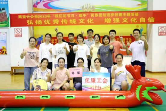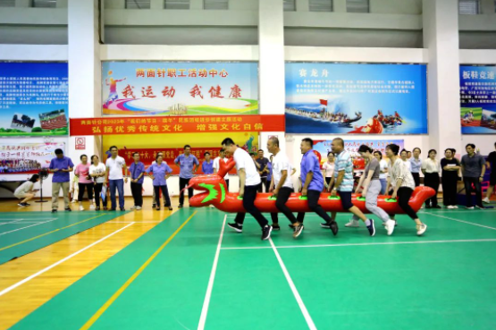 在高度契合端午傳統(tǒng)民俗的旱地龍舟賽中,呈現(xiàn)了一幅幅各民族員工團(tuán)結(jié)一致、齊心奔跑向未來(lái)的生動(dòng)畫(huà)面:參賽隊(duì)員們騎坐“龍舟”,以腳為“漿”,喊著整齊的口號(hào),齊步“劃”向終點(diǎn)。在投壺游戲中,隊(duì)員們屏氣凝神,體驗(yàn)了一回中國(guó)傳統(tǒng)的游戲,激發(fā)大家堅(jiān)持不懈、不言放棄的“投中”精神。經(jīng)過(guò)激烈角逐,最終億康工會(huì)、技術(shù)分會(huì)、營(yíng)銷分會(huì)分別榮獲冠、亞、季軍。